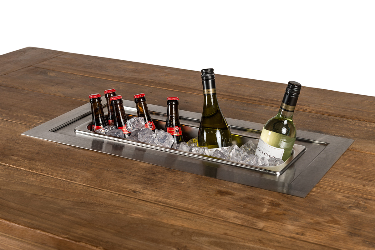 Den elegante vinkjøleren settes enkelt inn i håndtaket på peisbordet. Innsettbar vinkjøler finnes i kvadratisk eller rektangulær form, som enkelt kan byttes ut med den kvadratiske eller rektangulære innsettbare gassbrenneren på varme sommerdager.